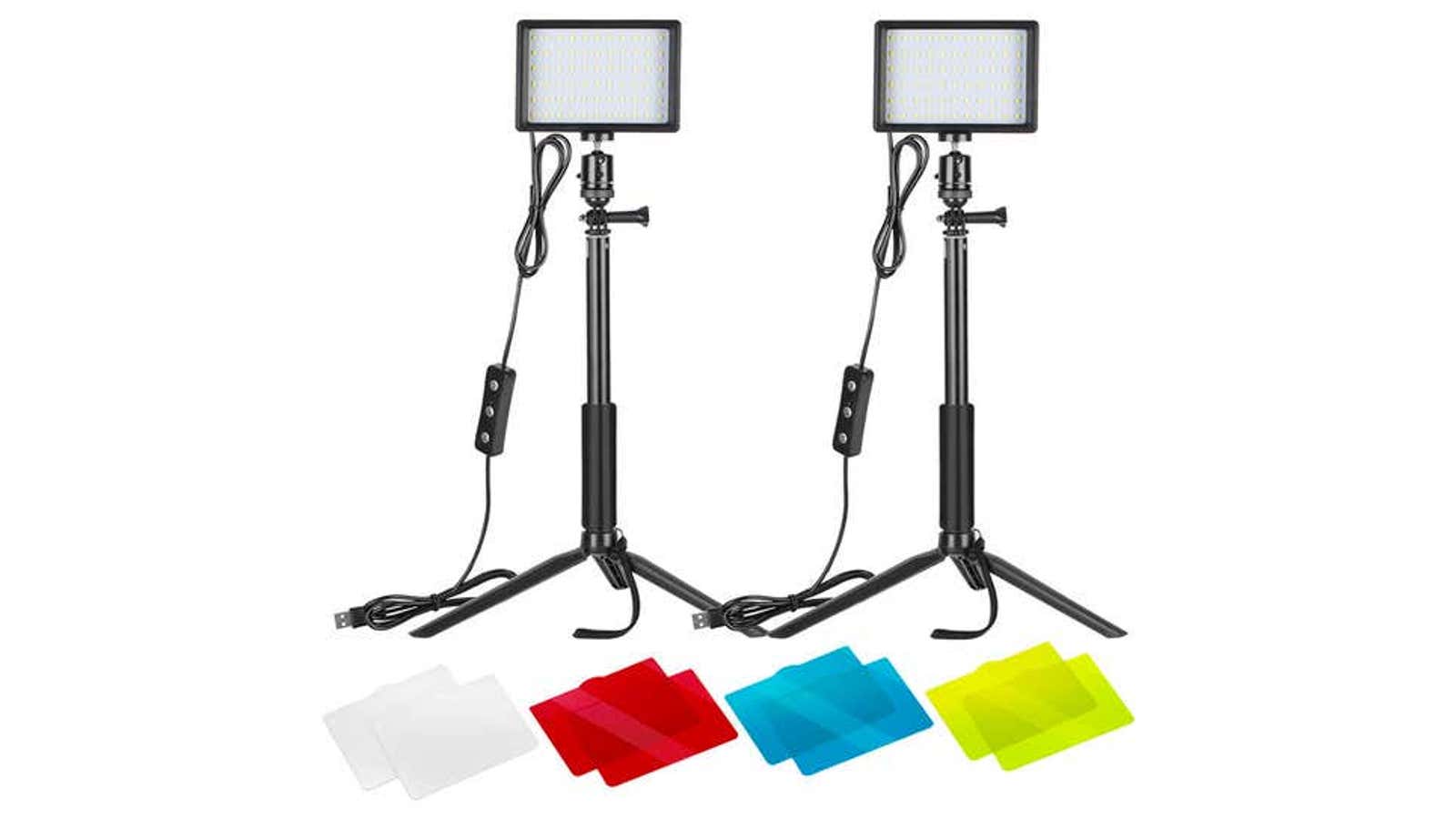 Si te vas a grabar a ti mismo, no deberías subestimar el poder de una buena iluminación ambiental. Marca mucha más diferencia de la que puedes imaginar. En este apartado hay cientos de opciones, pero probablemente no necesitas irte a las de estudio profesional, que son caras y bastante aparatosas. El Neewer Tabletop LED Video Light pack (74 dólares) es ideal para streaming. Da mucha luz y es fácil de instalar. Si buscas algo más localizado, el ESDDI PLV-R120 (20 dólares) es un anillo de luz con tres temperaturas de color para elegir.