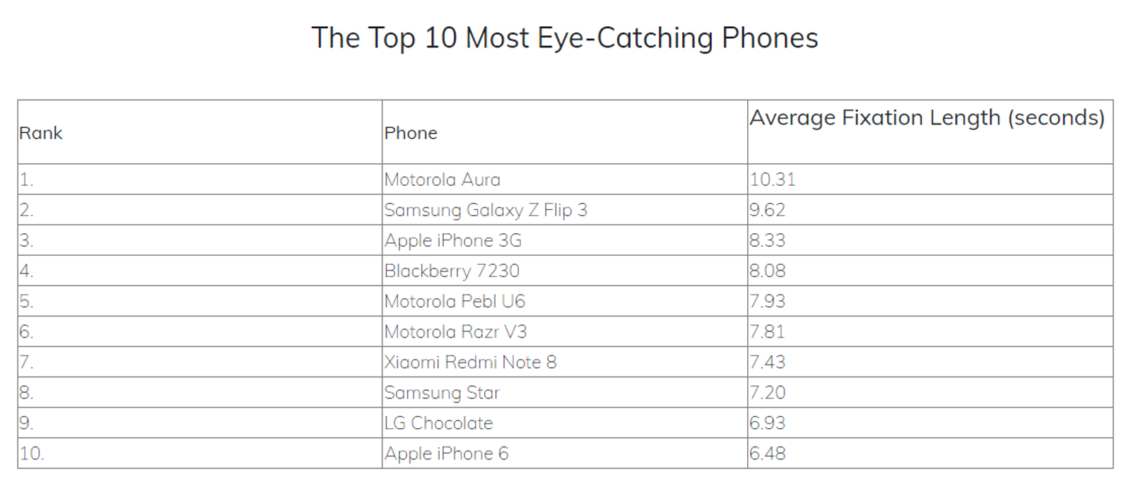 El estudio no se basa en encuestas, sino en usuarios mirando una pantalla. Mozillion recopiló 80 modelos de móvil considerados icónicos, y después puso sus fotos delante de 40 voluntarios. Un sistema de reconocimiento ocular registraba a qué teléfonos estaban mirando los sujetos de estudio, y durante cuánto tiempo lo hacían.