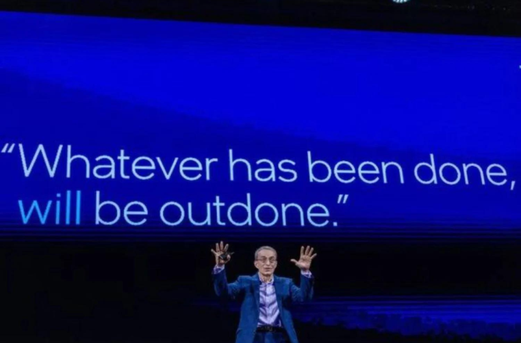 El domingo por la tarde Gelsinger citó Proverbios, tomando versículos de la Nueva Versión Internacional. Las líneas poéticas aparecieron en medio del precio en caída de Intel, seguidas de la noticia de que la compañía no había alcanzado las metas del trimestre, y reduciría miles de puestos de trabajo.