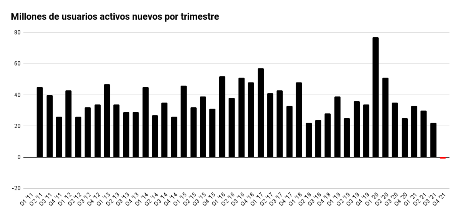 Su base de usuarios ha caído de 1930 millones a 1929 millones de activos al día.