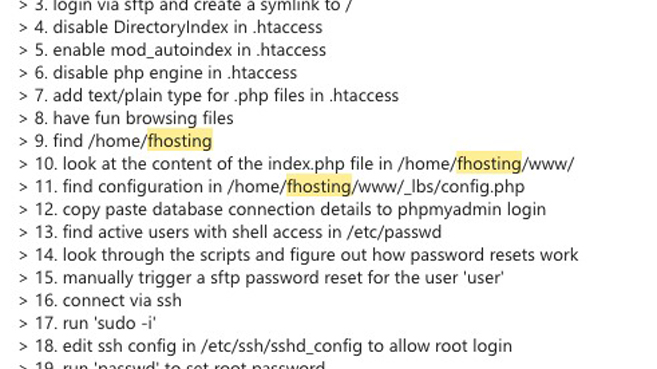 El hack inició un nuevo sitio en Freedom Hosting II y creó un enlace para obtener acceso al directorio raíz del servicio. Esto permitió al hacker explorar todo el servidor.