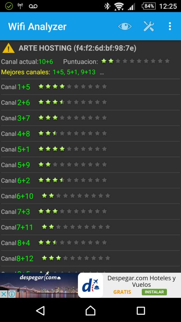 Desde ahí, podrás cambiar de forma sencilla el canal. Para saber cuál es el mejor canal y con menor interferencias es que usaremos WIFI ANALIZER.