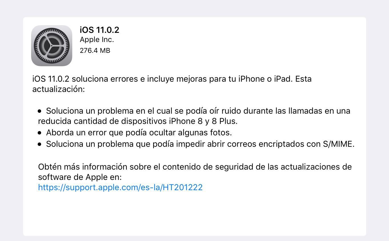 Y es por ello que hoy mismo Apple decidió lanzar la versión iOS 11.0.2 misma que se dice llega a corregir algunos pequeños errores que afectaban especialmente a los nuevos iPhone.
