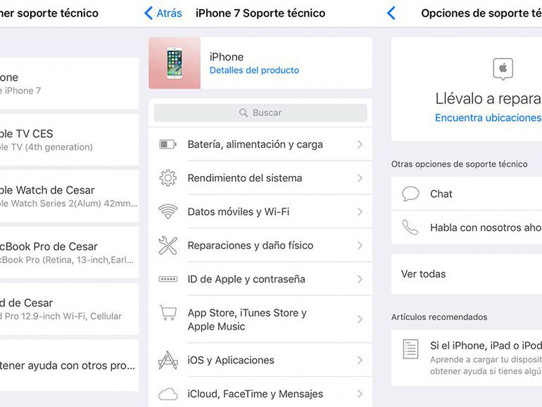 No todos los problemas tendrán como solución llevar el dispositivo a la Apple Store. Este nuevo app es capaz de darte respuestas para que tú mismo arregles pequeños problemas de configuración, en otros te indica que puedes iniciar un chat con alguien de soporte técnico desde el propio app y en ocasiones te permite agendar una llamada telefónica o incluso tomar una cita para una de sus tiendas.