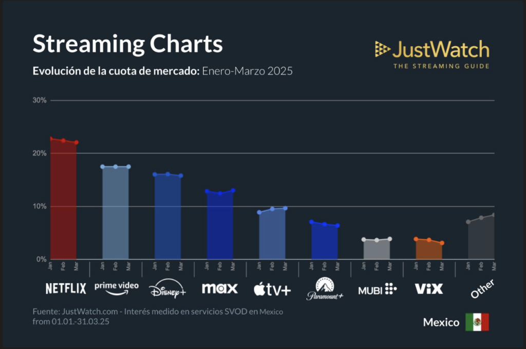 El panorama del entretenimiento digital en México continúa transformándose a pasos acelerados. Según el informe de JustWatch, la plataforma de búsqueda de contenido en streaming más grande del mundo, Netflix sigue a la cabeza en preferencia, pero con una competencia que ya se siente en el cuello. Durante el primer trimestre de 2025, el consumo de contenidos ha generado cambios clave en la cuota de mercado, los hábitos de los usuarios y la consolidación de algunas plataformas emergentes.
