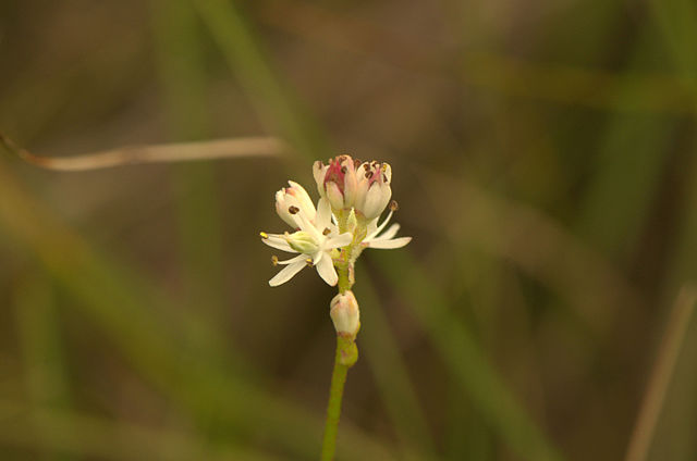 Arañas, insectos y animales pequeños caen víctimas de la Triantha glutinosa , una planta carnívora de los pantanos y montañas de Norteamérica.