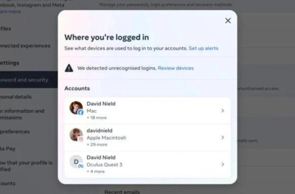 Si puedes iniciar sesión en tus cuentas desde otro dispositivo, a menudo puedes cerrar sesión de forma remota en todos los demás lugares desde allí. En Instagram en la web, por ejemplo, puedes hacer clic en «Dónde has iniciado sesión» para cerrar sesión en tus dispositivos; en realidad, es una buena idea revisar regularmente estas listas para estar atento a actividades sospechosas.