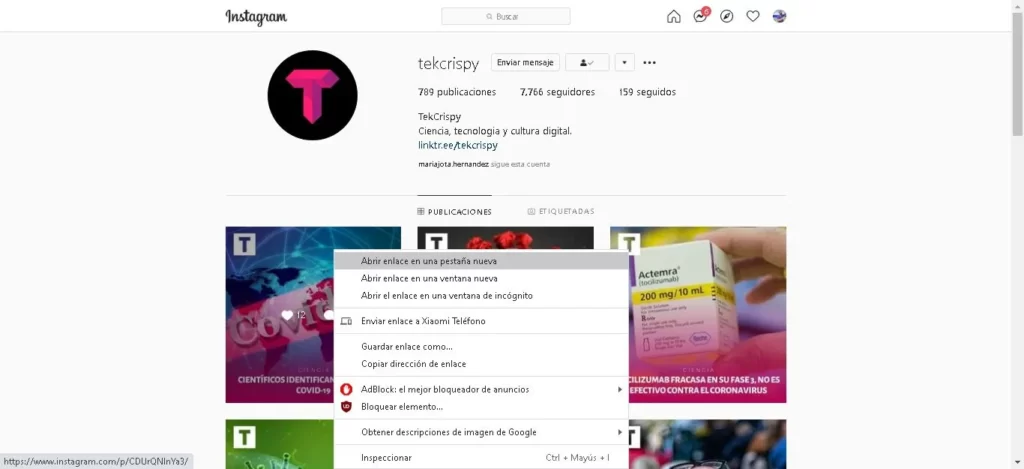 De esta manera, para comenzar, dirígete a Instagram y entra en el perfil que tienes la imagen que quieres obtener.