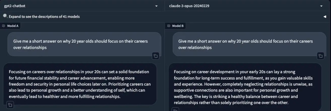 Puedes probar el chatbot gpt2 tú mismo en Sitio web de LMSYS Org.