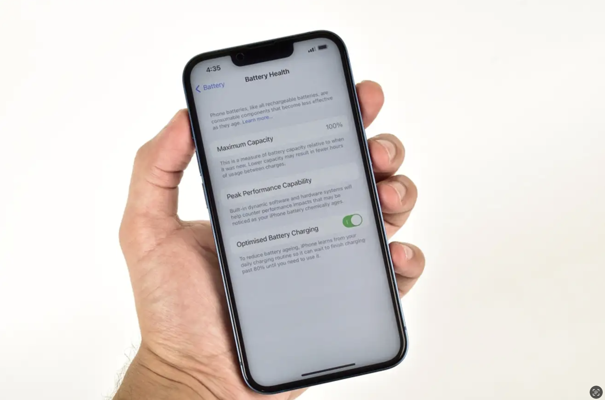 Para saber si te está ocurriendo, tan simple como acudir a los ajustes del teléfono, luego a “batería” y finalmente a “salud y carga de la batería”